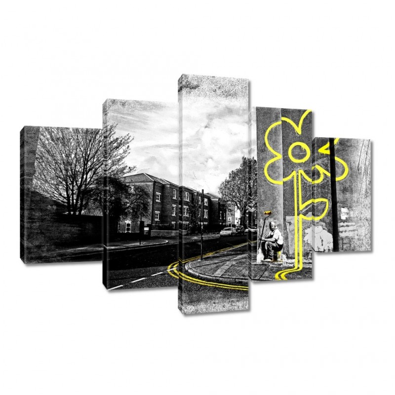Obraz 150x105cm Banksy żółty kwiatek