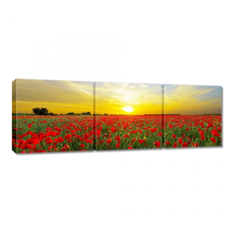 Obraz 150x50cm Pole maków z zachodem
