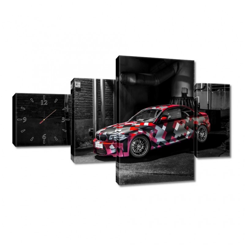 Zegar drukowany na płótnie w rozmiarze 130x80cm (szerokość x wysokość).