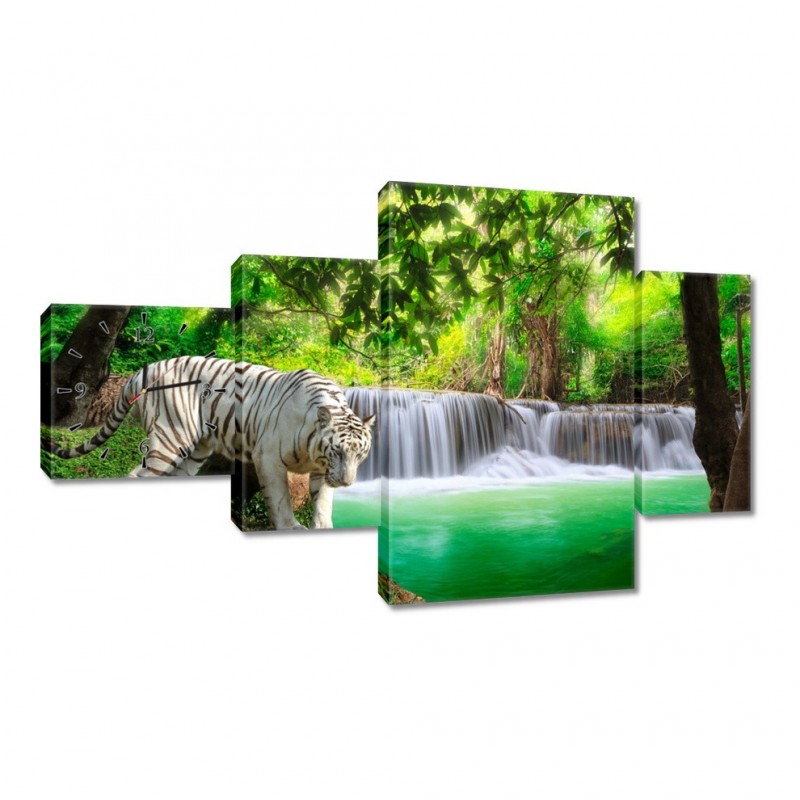 Zegar 130x80cm Tygrys przy wodospadzie